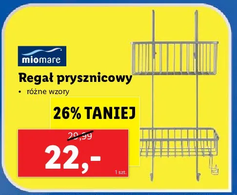 Cena produktu r贸偶ni si臋 w zale偶no艣ci od wybranego sklepu. Niestety nie posiadamy danych o aktualnych promocjach, jednak w艣r贸d archiwalnych ofert Rega艂 prysznicowy Miomare kosztuje od 22 z艂 do 29,99 z艂.