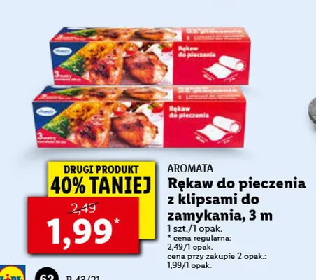 Cena produktu r贸偶ni si臋 w zale偶no艣ci od wybranego sklepu. Niestety nie posiadamy danych o aktualnych promocjach, jednak w艣r贸d archiwalnych ofert R臋kaw do pieczenia 3 m z klipsami Aromata kosztuje od 1,99 z艂.