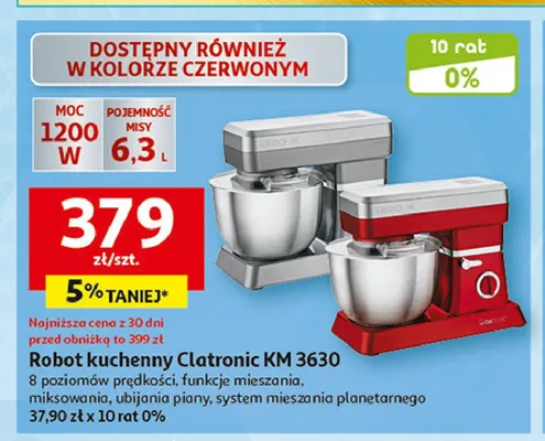 Cena produktu r贸偶ni si臋 w zale偶no艣ci od wybranego sklepu. Niestety nie posiadamy danych o aktualnych promocjach, jednak w艣r贸d archiwalnych ofert Robot kuchenny km 3630 Clatronic kosztuje od 299 z艂 do 379 z艂.