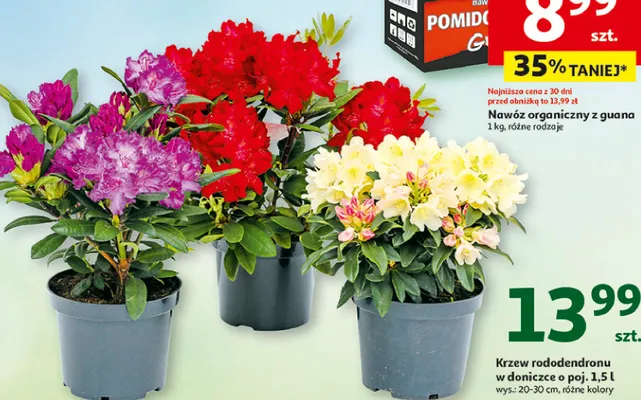 Zastanawiasz si臋, gdzie kupi膰 i ile kosztuje produkt Rododendron 20-30 cm don. 1.5 l? Regularnie sprawdzamy, czy jest promocja na ten produkt w Biedronka, Lidl, Kaufland, Auchan, Netto, Makro i innych sklepach. Aktualnie nie posiadamy ofert promocyjnych na ten produkt.