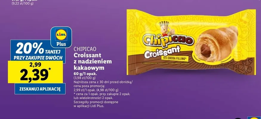 Cena produktu r贸偶ni si臋 w zale偶no艣ci od wybranego sklepu. Niestety nie posiadamy danych o aktualnych promocjach, jednak w艣r贸d archiwalnych ofert Rogal Chipicao kosztuje od 1,99 z艂 do 2,69 z艂.