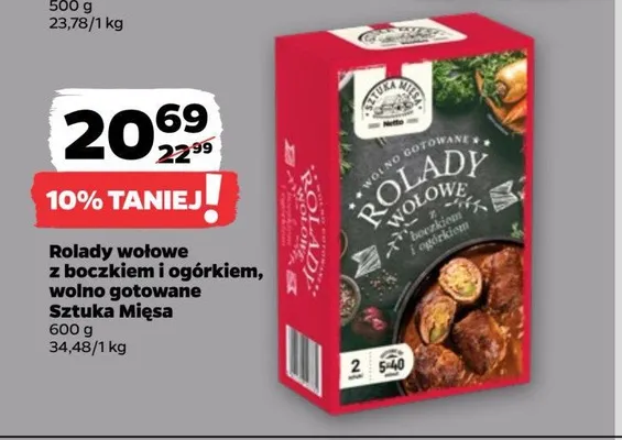 Gdzie mo偶na tanio kupi膰 produkt Rolady wo艂owe z boczkiem i og贸rkiem wolno gotowane SZTUKA MI臉SA NETTO?
