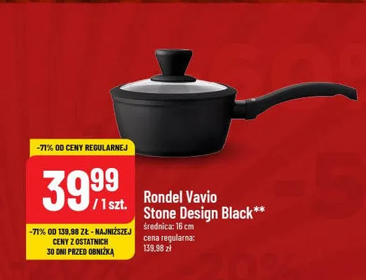 Zastanawiasz si臋, gdzie kupi膰 i ile kosztuje produkt Rondel stone design black 16 cm Vavio? Regularnie sprawdzamy, czy jest promocja na ten produkt w Biedronka, Lidl, Kaufland, Auchan, Netto, Makro i innych sklepach. Aktualnie nie posiadamy ofert promocyjnych na ten produkt.