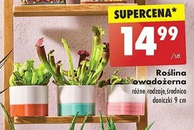 Cena produktu różni się w zależności od wybranego sklepu. Niestety nie posiadamy danych o aktualnych promocjach, jednak wśród archiwalnych ofert Roślina owadożerna śr. don. 9 cm kosztuje od 12,99 zł do 21,99 zł.