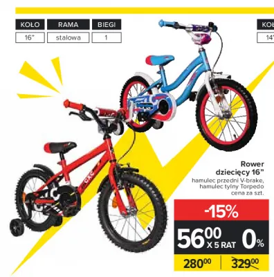 Cena produktu r贸偶ni si臋 w zale偶no艣ci od wybranego sklepu. Niestety nie posiadamy danych o aktualnych promocjach, jednak w艣r贸d archiwalnych ofert Rower 16" rama stalowa kosztuje od 280 z艂.