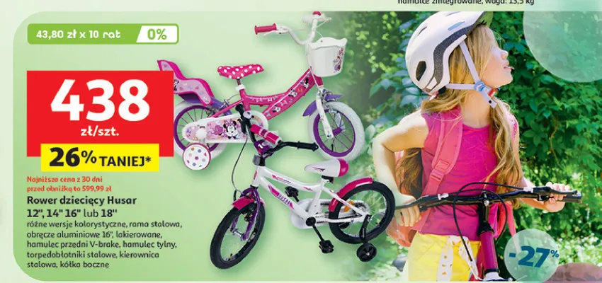 Cena produktu r贸偶ni si臋 w zale偶no艣ci od wybranego sklepu. Produkt Rower dzieci臋cy 18" Husar mo偶esz kupi膰 w promocji ju偶 od 429 z艂 do 599 z艂. Najta艅sza oferta, jak膮 mamy w naszej bazie jest z sieci Carrefour. Rower dzieci臋cy 18" Husar kosztuje aktualnie 429 z艂. Zobacz ofert臋