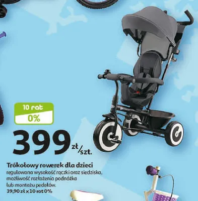Cena produktu r贸偶ni si臋 w zale偶no艣ci od wybranego sklepu. Niestety nie posiadamy danych o aktualnych promocjach, jednak w艣r贸d archiwalnych ofert Rower dzieci臋cy tr贸jko艂owy z baldachimem kosztuje od 399 z艂.