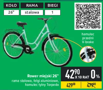Cena produktu r贸偶ni si臋 w zale偶no艣ci od wybranego sklepu. Produkt Rower miejski 26" hamulec przedni v-brake mo偶esz kupi膰 w promocji ju偶 od 649 z艂 do 1199 z艂. Najta艅sza oferta, jak膮 mamy w naszej bazie jest z sieci Carrefour. Rower miejski 26" hamulec przedni v-brake kosztuje aktualnie 649 z艂. Zobacz ofert臋