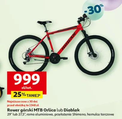 Cena produktu r贸偶ni si臋 w zale偶no艣ci od wybranego sklepu. Produkt Rower mtb orlica 29" mo偶esz kupi膰 w promocji ju偶 od 999 z艂. Najta艅sza oferta, jak膮 mamy w naszej bazie jest z sieci Carrefour. Rower mtb orlica 29" kosztuje aktualnie 999 z艂. Zobacz ofert臋