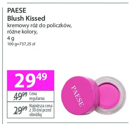 Zastanawiasz si臋, gdzie kupi膰 i ile kosztuje produkt R贸偶 do policzk贸w prasowany? Regularnie sprawdzamy, czy jest promocja na ten produkt w Biedronka, Lidl, Kaufland, Auchan, Netto, Makro i innych sklepach. Aktualnie nie posiadamy ofert promocyjnych na ten produkt.