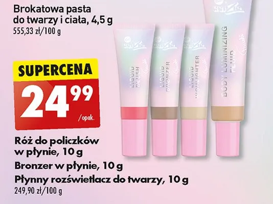 Cena produktu różni się w zależności od wybranego sklepu. Niestety nie posiadamy danych o aktualnych promocjach, jednak wśród archiwalnych ofert Róż do policzków w płynie Bell x genzie kosztuje od 24,99 zł.