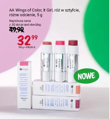 Cena produktu r贸偶ni si臋 w zale偶no艣ci od wybranego sklepu. Niestety nie posiadamy danych o aktualnych promocjach, jednak w艣r贸d archiwalnych ofert R贸偶 w sztyfcie Aa wings of color kosztuje od 32,99 z艂.