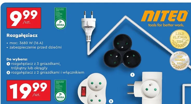 Przeglądaj oferty promocyjne na produkt Rozgałęziacz okrągły z 3 gniazdkami Niteo tools