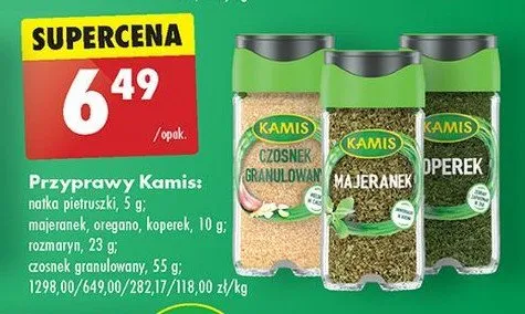 Cena produktu r贸偶ni si臋 w zale偶no艣ci od wybranego sklepu. Niestety nie posiadamy danych o aktualnych promocjach, jednak w艣r贸d archiwalnych ofert Rozmaryn - s艂oiczek Kamis kosztuje od 4,99 z艂 do 6,49 z艂.