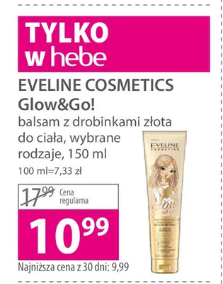 Cena produktu różni się w zależności od wybranego sklepu. Niestety nie posiadamy danych o aktualnych promocjach, jednak wśród archiwalnych ofert Rozświetlająco-nawilżający balsam do ciała Eveline glow and go kosztuje od 8,99 zł do 12,99 zł.