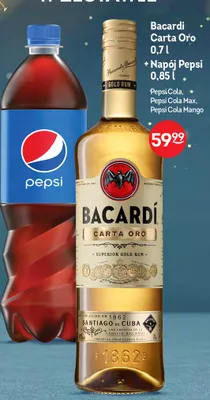 Ile kosztuje Rum 700 ml + pepsi 850 ml Bacardi carta oro?