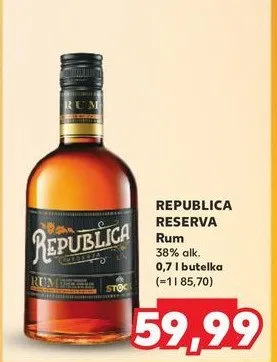 Zastanawiasz si臋, gdzie kupi膰 i ile kosztuje produkt Rum Republica dark? Regularnie sprawdzamy, czy jest promocja na ten produkt w Biedronka, Lidl, Kaufland, Auchan, Netto, Makro i innych sklepach. Aktualnie posiadamy 1 ofert臋 promocyjn膮 na ten produkt. Ceny zaczynaj膮 si臋 od 39,99z艂!