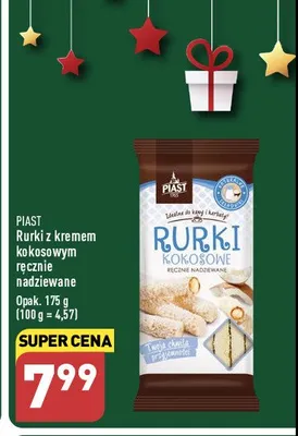 Cena produktu r贸偶ni si臋 w zale偶no艣ci od wybranego sklepu. Niestety nie posiadamy danych o aktualnych promocjach, jednak w艣r贸d archiwalnych ofert Rurki kokosowe Piast kosztuje od 7,99 z艂.