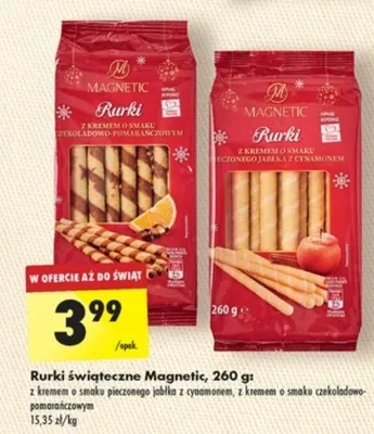 Cena produktu r贸偶ni si臋 w zale偶no艣ci od wybranego sklepu. Niestety nie posiadamy danych o aktualnych promocjach, jednak w艣r贸d archiwalnych ofert Rurki o smaku pieczonego jab艂ka z cynamonem Magnetic kosztuje od 3,99 z艂.