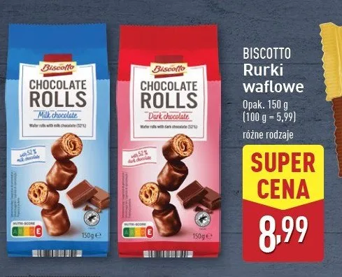Ile kosztuje Rurki waflowe w czekoladzie pe艂nomlecznej Biscotto?