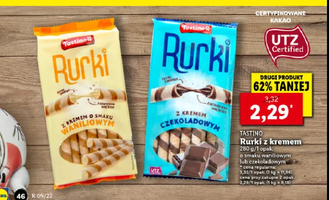 Ile kosztuje Rurki waflowe z kremem czekoladowym Tastino?