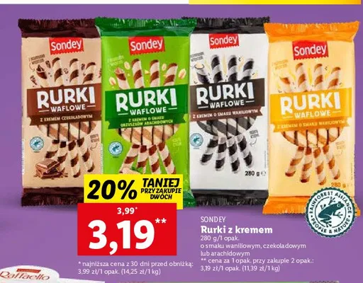 Rurki waflowe z kremem orzechowym Sondey promocje w sklepach - znajd藕 ofert臋 dla siebie!