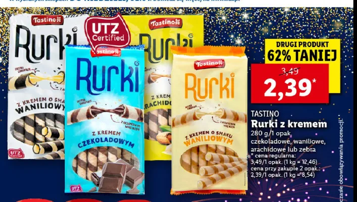 Przegl膮daj podobne oferty promocyjne do Rurki waflowe zebra z kremem waniliowym Tastino!
