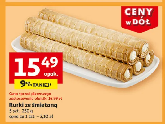 Cena produktu r贸偶ni si臋 w zale偶no艣ci od wybranego sklepu. Niestety nie posiadamy danych o aktualnych promocjach, jednak w艣r贸d archiwalnych ofert Rurki ze 艣mietan膮 kosztuje od 11,99 z艂 do 15,99 z艂.