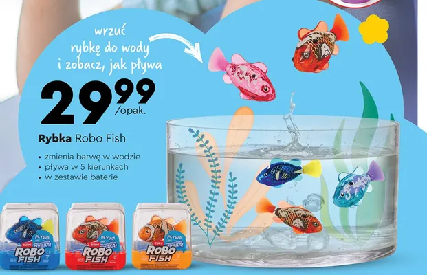 Cena produktu r贸偶ni si臋 w zale偶no艣ci od wybranego sklepu. Niestety nie posiadamy danych o aktualnych promocjach, jednak w艣r贸d archiwalnych ofert Rybka robo fish kosztuje od 29,99 z艂.