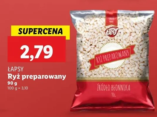 Cena produktu różni się w zależności od wybranego sklepu. Niestety nie posiadamy danych o aktualnych promocjach, jednak wśród archiwalnych ofert Ryż preparowany Łapsy kosztuje od 2,79 zł.