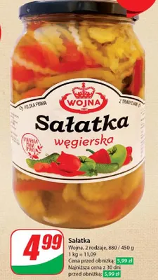 Cena produktu r贸偶ni si臋 w zale偶no艣ci od wybranego sklepu. Niestety nie posiadamy danych o aktualnych promocjach, jednak w艣r贸d archiwalnych ofert Sa艂atka w臋gierska Wojna kosztuje od 2,99 z艂 do 5,39 z艂.