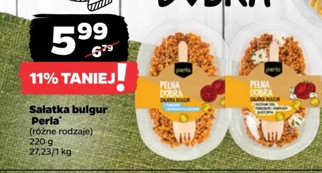 Cena produktu r贸偶ni si臋 w zale偶no艣ci od wybranego sklepu. Produkt Sa艂atka z kaszy bulgur w sosie pomidorowym Perla mo偶esz kupi膰 w promocji ju偶 od 2,19 z艂 do 4,99 z艂. Najta艅sza oferta, jak膮 mamy w naszej bazie jest z sieci ABC. Sa艂atka z kaszy bulgur w sosie pomidorowym Perla kosztuje aktualnie 2,19 z艂. Zobacz ofert臋