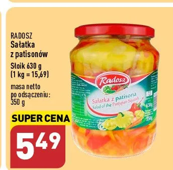 Cena produktu r贸偶ni si臋 w zale偶no艣ci od wybranego sklepu. Niestety nie posiadamy danych o aktualnych promocjach, jednak w艣r贸d archiwalnych ofert Sa艂atka z patison贸w RADOSZ SMAK TRADYCJI kosztuje od 5,49 z艂.