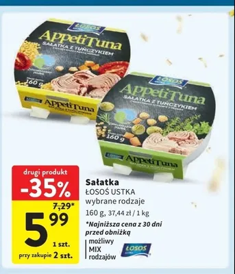 Gdzie można tanio kupić produkt Sałatka z tuńczykiem z dzikim ryżem i imbirem marynowanym z warzywami Łosoś ustka appetituna?