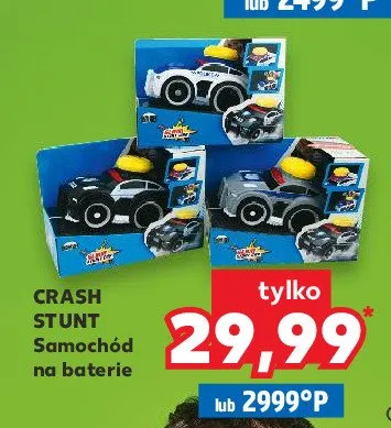 Cena produktu r贸偶ni si臋 w zale偶no艣ci od wybranego sklepu. Niestety nie posiadamy danych o aktualnych promocjach, jednak w艣r贸d archiwalnych ofert Samoch贸d crash stunt kosztuje od 29,99 z艂.