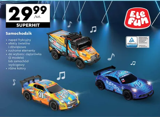 Przegl膮daj podobne oferty promocyjne do Samoch贸d wy艣cigowy 1:32 Elefun!