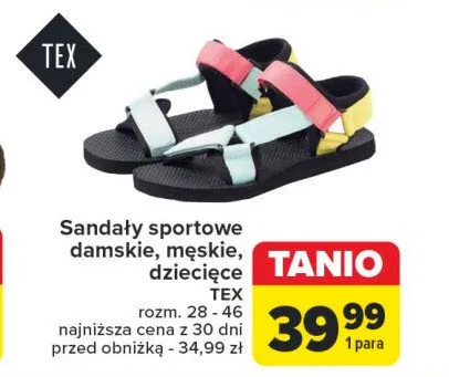 Cena produktu r贸偶ni si臋 w zale偶no艣ci od wybranego sklepu. Niestety nie posiadamy danych o aktualnych promocjach, jednak w艣r贸d archiwalnych ofert Sanda艂y sportowe m臋skie 28-46 Tex kosztuje od 39,99 z艂.