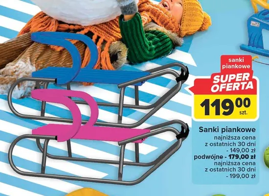 Cena produktu r贸偶ni si臋 w zale偶no艣ci od wybranego sklepu. Niestety nie posiadamy danych o aktualnych promocjach, jednak w艣r贸d archiwalnych ofert Sanki piankowe z dwoma oparciami kosztuje od 179 z艂.