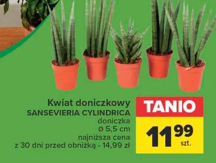 Cena produktu r贸偶ni si臋 w zale偶no艣ci od wybranego sklepu. Niestety nie posiadamy danych o aktualnych promocjach, jednak w艣r贸d archiwalnych ofert Sansevieria cylindrica 5.5 cm kosztuje od 11,99 z艂.