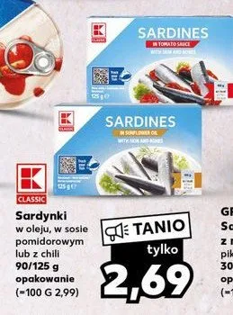 Ile kosztuje Sardynki w sosie chilli K-classic?