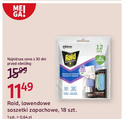 Ile kosztuje Saszetki przeciw molom lawenda Raid?