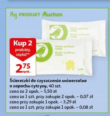Ile kosztuje Ściereczki czyszczące do różnych powierzchni Auchan na co dzień (logo zielone)?