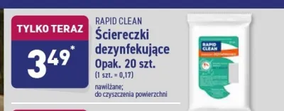 Cena produktu r贸偶ni si臋 w zale偶no艣ci od wybranego sklepu. Niestety nie posiadamy danych o aktualnych promocjach, jednak w艣r贸d archiwalnych ofert 艢ciereczki dezynfekuj膮ce Rapid clean kosztuje od 3,49 z艂.