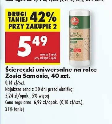 Cena produktu r贸偶ni si臋 w zale偶no艣ci od wybranego sklepu. Niestety nie posiadamy danych o aktualnych promocjach, jednak w艣r贸d archiwalnych ofert 艢ciereczki na rolce Zosia samosia kosztuje od 5,49 z艂 do 5,99 z艂.
