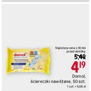 Cena produktu różni się w zależności od wybranego sklepu. Niestety nie posiadamy danych o aktualnych promocjach, jednak wśród archiwalnych ofert Ściereczki nawilżane citrus Domol kosztuje od 3,49 zł do 4,19 zł.