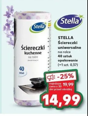 Cena produktu r贸偶ni si臋 w zale偶no艣ci od wybranego sklepu. Niestety nie posiadamy danych o aktualnych promocjach, jednak w艣r贸d archiwalnych ofert 艢ciereczki uniwersalne na rolce Stella kosztuje od 12,99 z艂 do 14,99 z艂.