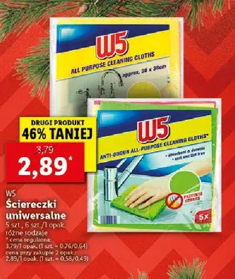 Cena produktu r贸偶ni si臋 w zale偶no艣ci od wybranego sklepu. Niestety nie posiadamy danych o aktualnych promocjach, jednak w艣r贸d archiwalnych ofert 艢ciereczki uniwersalne W5 kosztuje od 2,69 z艂 do 2,89 z艂.