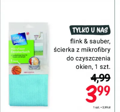 Cena produktu r贸偶ni si臋 w zale偶no艣ci od wybranego sklepu. Niestety nie posiadamy danych o aktualnych promocjach, jednak w艣r贸d archiwalnych ofert 艢cierka z mikrofibry do czyszczenia okien Flink & sauber kosztuje od 3,99 z艂.