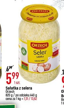 Cena produktu r贸偶ni si臋 w zale偶no艣ci od wybranego sklepu. Niestety nie posiadamy danych o aktualnych promocjach, jednak w艣r贸d archiwalnych ofert Seler sa艂atka Orzech kosztuje od 1,5 z艂.