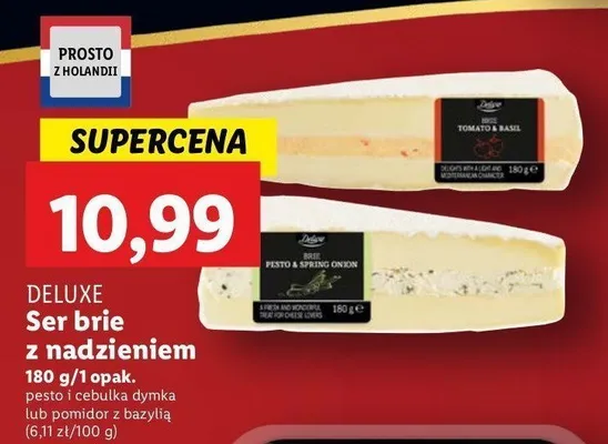 Gdzie można tanio kupić produkt Ser brie nadziewany serkiem śmietankowym z pesto bazyliowym i młodą cebulką Deluxe?